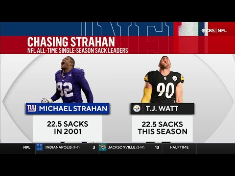 In 2012, Houston Texans’ defensive end J.J. Watt set the NFL season sack record with 20.5 sacks. The previous record was 22.5 sacks, set by Michael Strahan of the New York Giants in 2001.